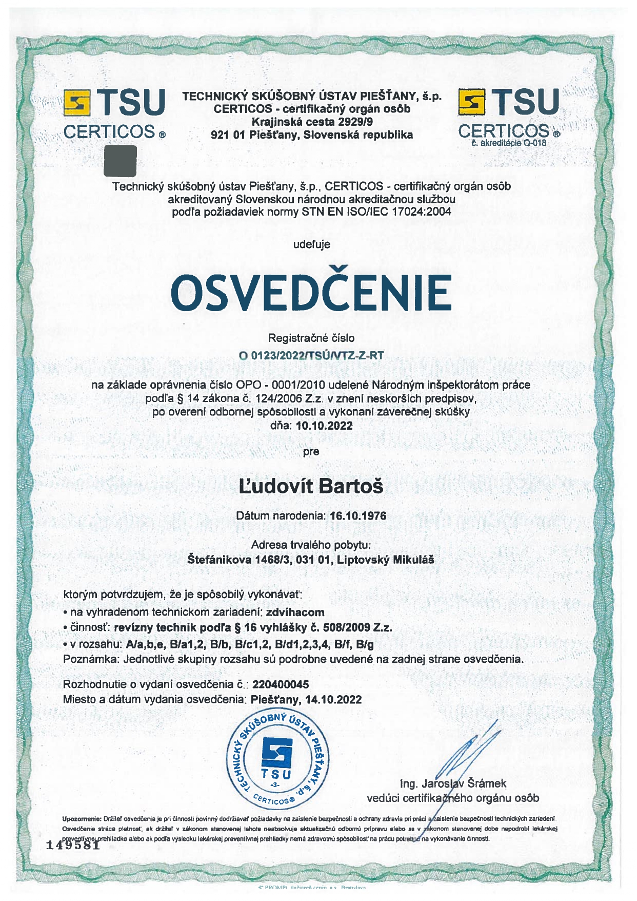 • Asistencia pri odborných skúškach a technickej inšpekcii